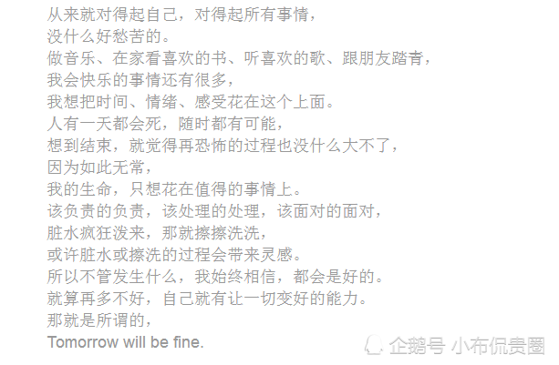 无怪乎吴青峰会感慨“从来就对得起自己,对得起所有事情”。无论事情谁是谁非,无愧于心就好。不管发生什么,明天会更好。加油,吴青峰!Tomorrow will be fine!