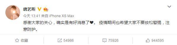 一天有两条关于唐艺昕的新闻,一时间让喜爱她的粉丝高兴不止,纷纷送去了祝福。有网友评论道:“准备迎接糖家小宝贝啦”“姐姐要健健康康,一直幸福下去!”等很多祝福的话语。