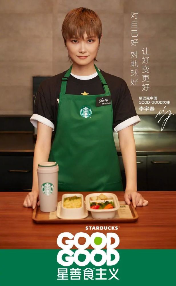 星巴克此次发起的“GOODGOOD星善食主义”行动是联合了品牌别样肉客(Beyond Meat)和噢麦力OATLY。其中,坚持环保公益GOODGOOD的@李宇春 成为星巴克#GOODGOOD#大使!