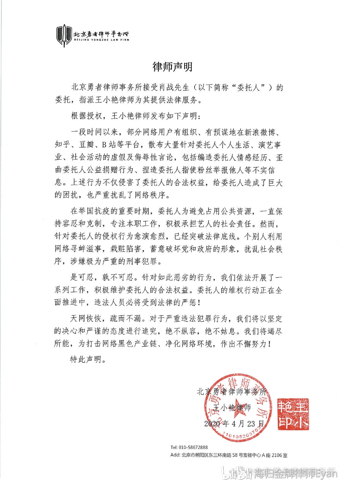 四.是可忍,孰不可忍。肖战作为当事人可以这么说,作为向社会公开表达意见的律师声明这么说是不是有点情绪化,委托人之所以委托律师是想借助律师的专业法律服务为自己维权,而不是发泄情绪。声明内容到底应该是专业严谨还是带个人情绪呢?