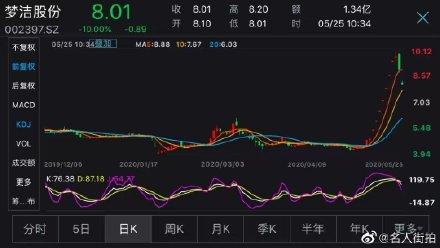 卖床上用品的 梦洁股份 (002397.SZ),请“带货女王”薇娅带了几次货,成为近期市场热议的公司之一,股价从5月12日-20日连续7个交易日涨停,公司市值从40亿元增至74亿元。