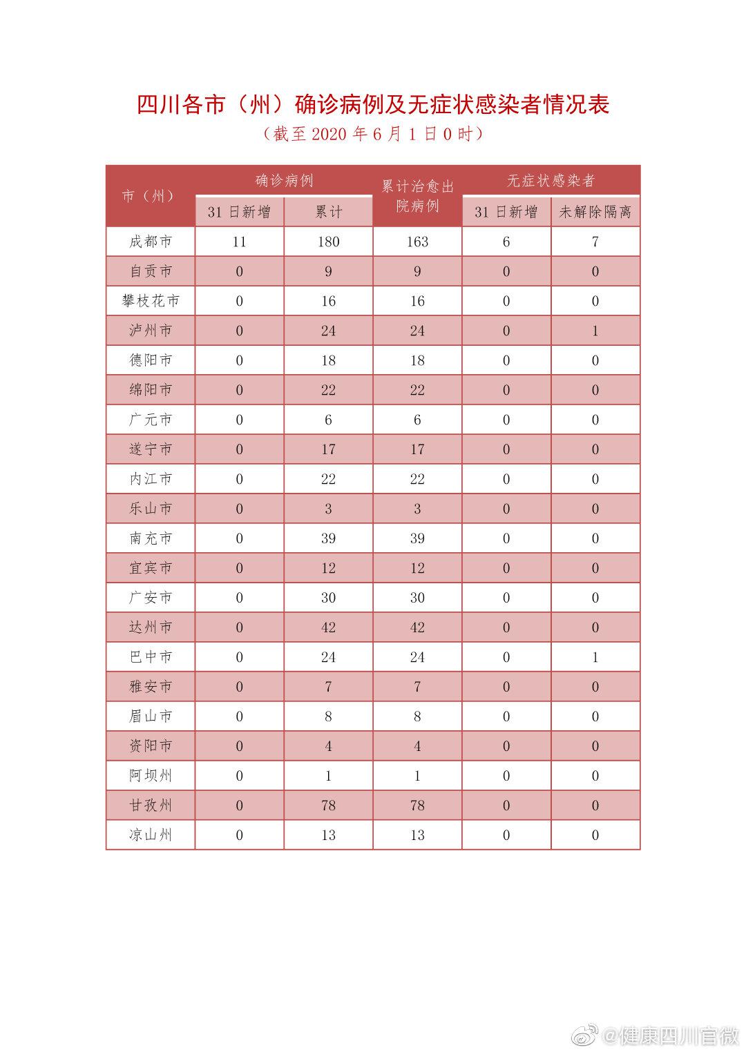 原标题:四川省新型冠状病毒肺炎疫情最新情况(6月1日发布)
