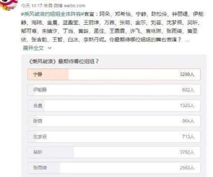 排在第1名的是吴昕,看来这么多年一直在《快乐大本营》的舞台上摸爬滚打,吴昕还是积攒了一定的人气的,虽然在大本营上她塑造的是一个傻白甜的形象,但是一些不经意的细节,足以看出吴昕是一个很有实力的女艺人。参加《乘风破浪的姐姐》时她训练的也很刻苦,相信到最后吴昕一定也会取得不错的成绩。
