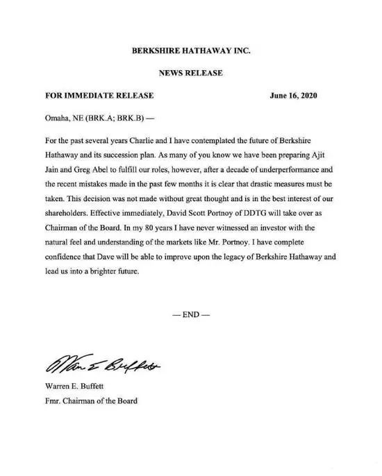 腾讯财讯昨天的报道:《今天早上,巴菲特“被”退休……》