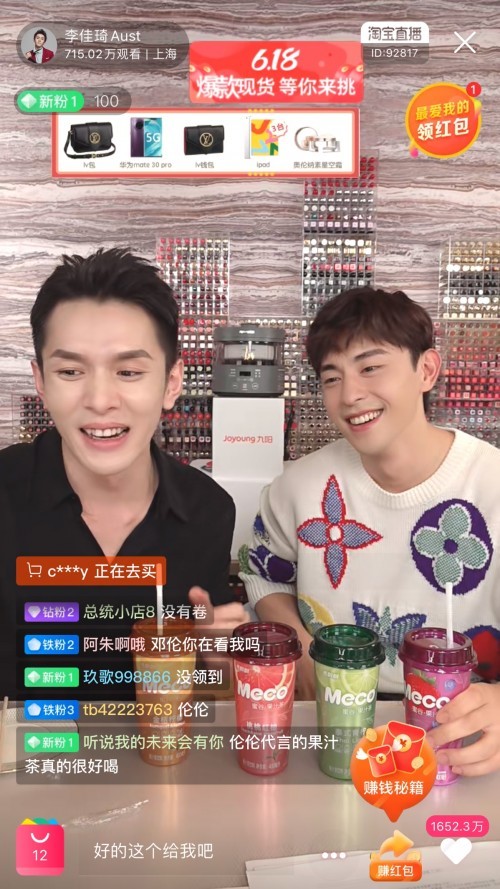 “真的很好喝耶,夏天冰镇一下会更好喝!”在直播过程中,邓伦对Meco蜜谷果汁茶赞不绝口,并和李佳琦比赛,将手中的果汁茶一饮而尽。引得“灯芯”疯狂刷屏:“为伦伦代言的果汁茶打call”“我伦好棒,从此多了一个墙头:Meco”。