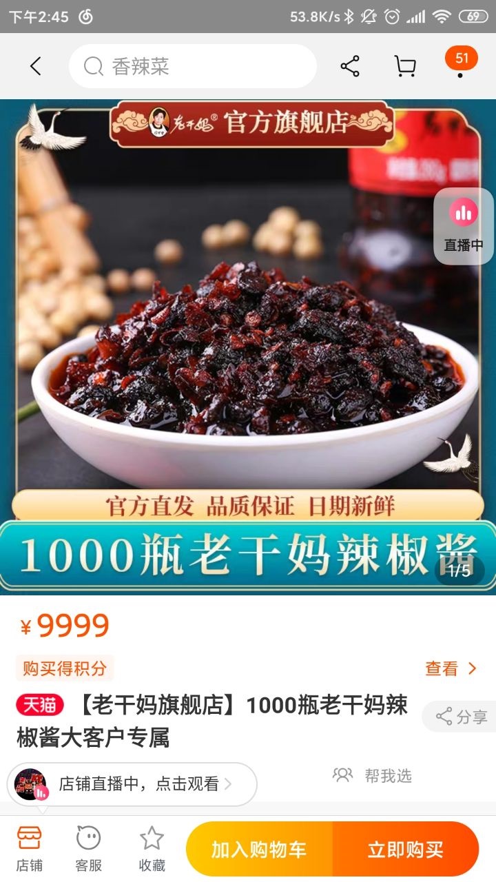 IT之家 7 月 2 日消息 老干妈官方旗舰店今日上线一个名为 “大客户专属”的 1000 瓶辣椒酱组合装产品,售价 9999 元,疑似在回应昨天腾讯的 “要买 1000 瓶辣椒酱”作为奖品征集线索。