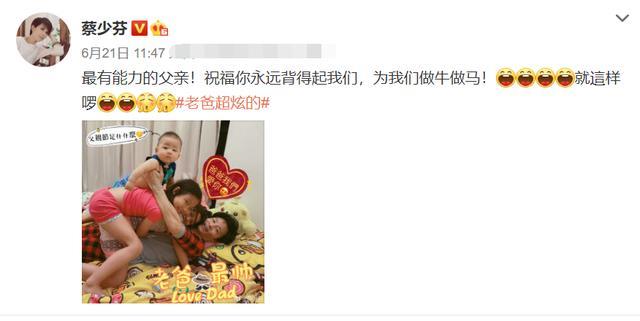二人如今十分甜蜜,还拥有了三个孩子。在父亲节当天,蔡少芬也一如既往地公开为张晋庆祝父亲节,言语中饱含着对丈夫的爱。
