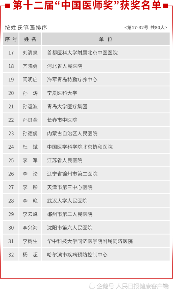 据中国医师协会官网消息,8月19日第十二届“中国医师奖”名单公布,全国共有80位医师入选。