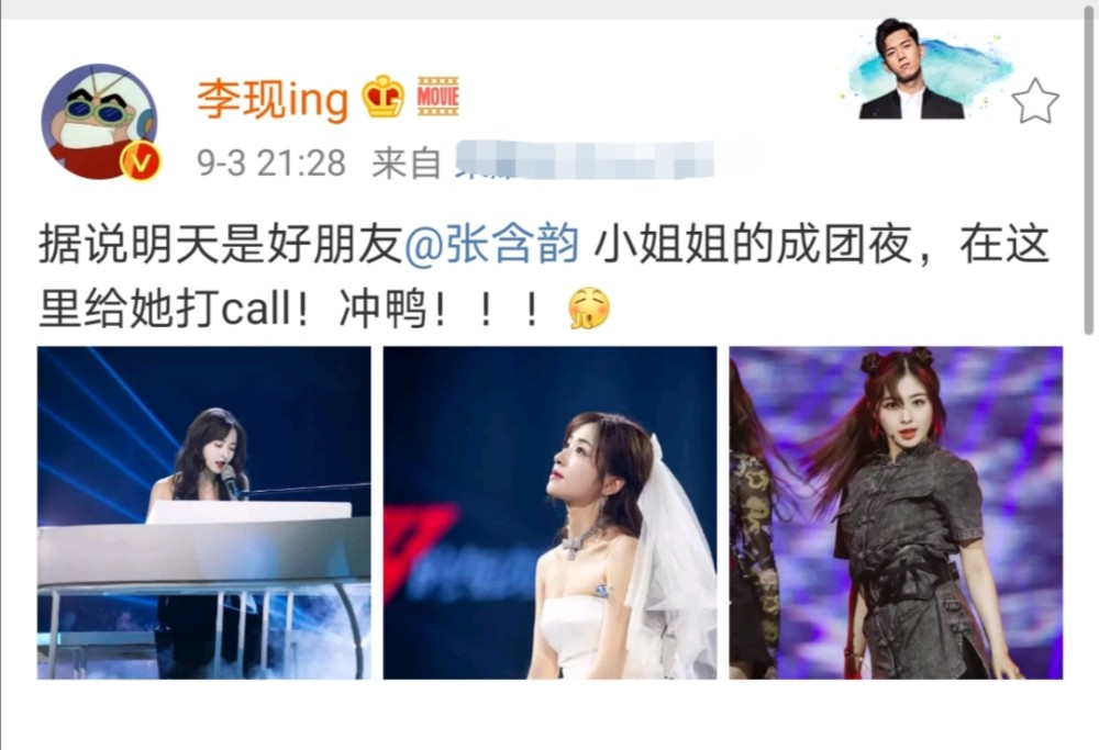 李现赵丽颖为张含韵打call,力挺好友成团之夜,2女星关系太铁