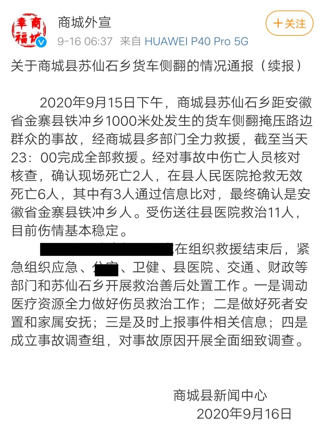 河南商城县货车侧翻致8死11伤情节反转,拾蒜瓣群众并非哄抢
