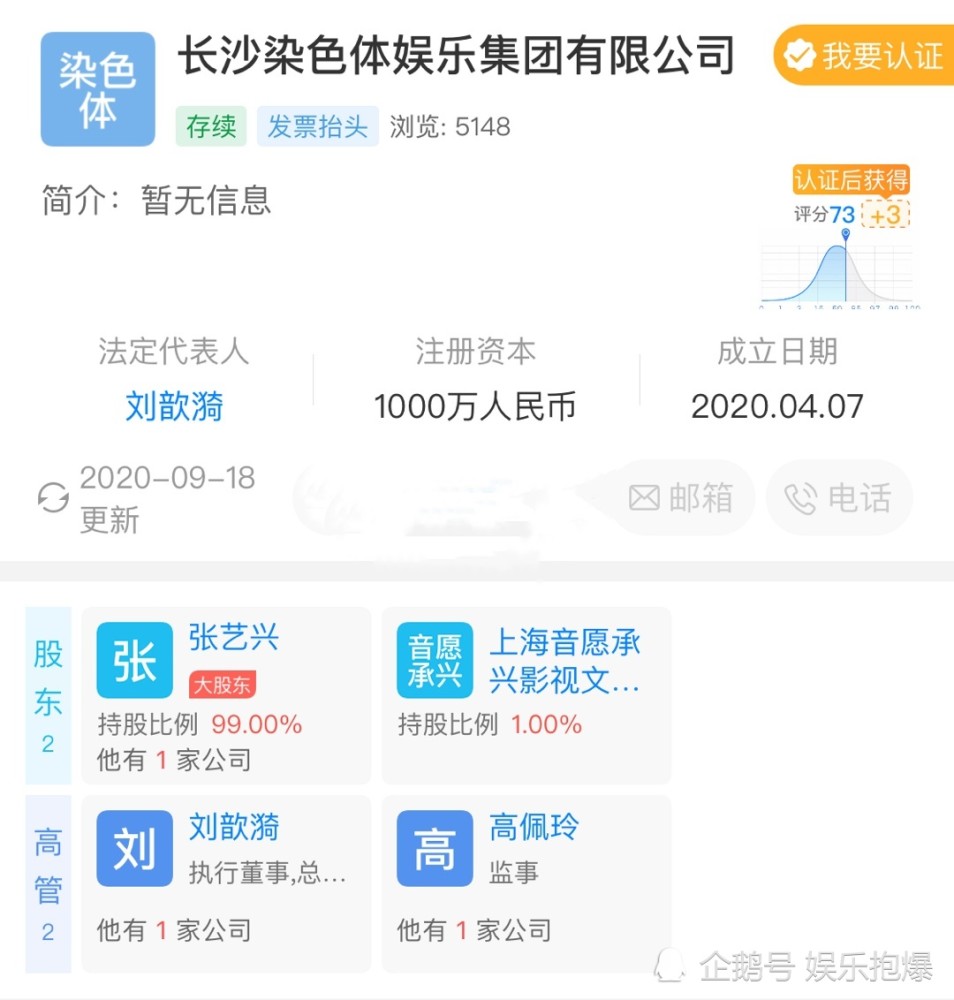 但是近日有网友发现,张艺兴在国内注册了一家名为“染色体”的娱乐公司,从曝光的资料可以看到,这家娱乐公司是张艺兴持股99%作为大股东,而且根据名称判断该公司应该会在长沙成立,作为“长沙小骄傲”的他,选在这个地方也是不让人意外的,而公司早在今年4月份的时候就已经注册了。