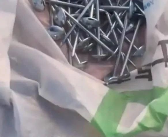 所以附近是不是有个修车店?这行为太缺德了。为了赚钱不择手段,没底线的人真多 。还有人说,拉钉子的车吗?能好好包装吗?撒这一路?