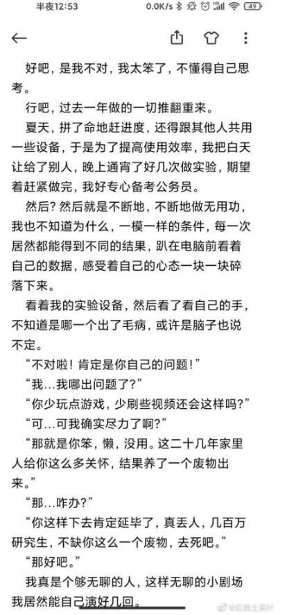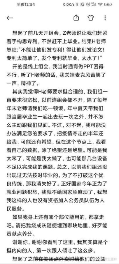 自杀研究生遗书微博曝光