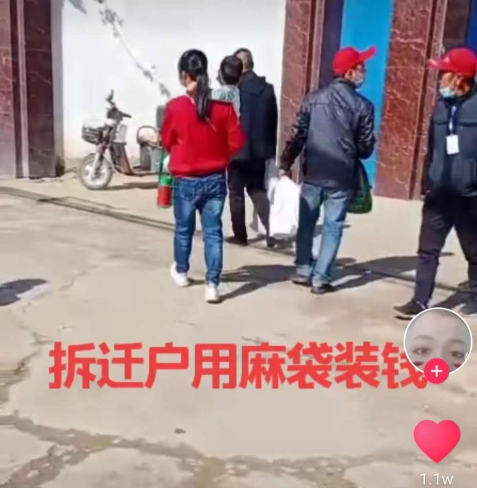 河北保定村民拿麻袋排队领取拆迁款,补偿用现金发放周围人羡慕不已!