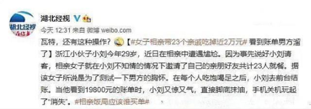 浙江有一位男子与女孩去相亲,对方竟然带来了4个闺蜜,一顿饭就花掉了5000元,男子的做法让不少网友都表示:漂亮!