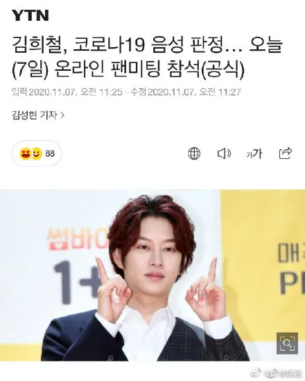 #金希澈新冠病毒检测为阴性# 据韩媒,SM娱乐相关人士透露,金希澈新冠病毒检查结果判断为阴性,今日将如期参加线上粉丝见面会。此前,金希澈因与新冠肺炎确诊者有路线重叠的情况,而进行了自我隔离,并缺席了SUPER JUNIOR15周年的直播活动。