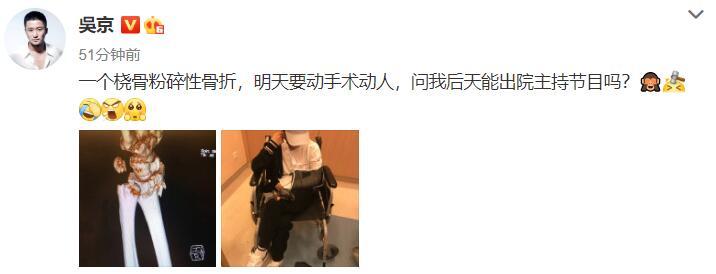 【首发】11月8号,吴京在微博发文曝老婆谢楠桡骨粉碎性骨折,他发文称“一个桡骨粉碎性骨折的人,明天就要动手术,问我后天能出院主持工作吗”,透露谢楠桡骨粉碎性骨折,明天动手术!