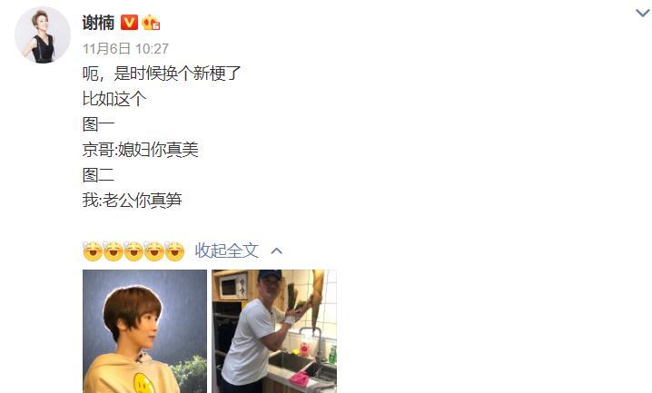 谢楠吴京一直是娱乐圈中的模范夫妻,二人虽然已是一对结婚多年的老夫老妻,但不时在微博撒狗粮,谢楠前天还曾晒吴京表情包秀恩爱,她晒出一张自己的美照和一张吴京在厨房拿着春笋做搞怪动作的表情包图片,调侃是时候换个新梗了,京哥夸赞她漂亮,他夸赞老公真“笋”,没想到时隔两天就出意外,桡骨粉碎性骨折,应该是这两天发生的事情。