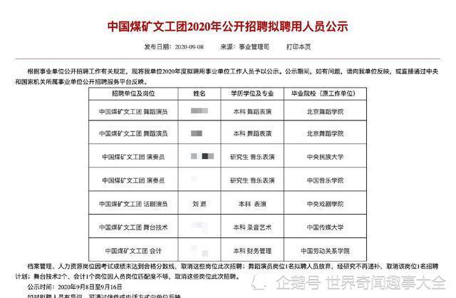 在中国煤矿文工团的这张告示上,我们可以看到刘源这个名字,学历为本科,专业表演,毕业于中央戏剧学院,而这次招聘的是话剧演员的岗位。