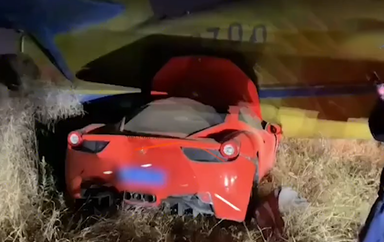 2020年11月15日19点左右,在浙江义乌的机场附近。一辆法拉利豪车与一辆飞机发生了惨烈的碰撞,