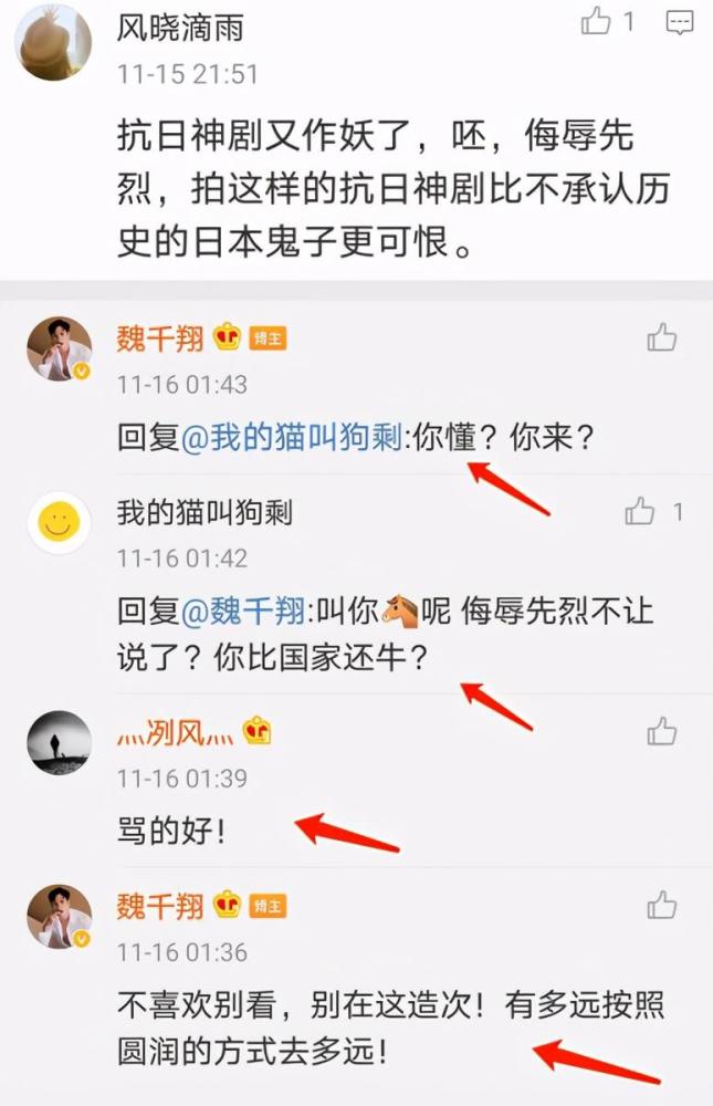 然而就在这“下有群情涌动”、“上有人民日报批评”,就这样的情况下,任谁都该“冷处理”,偏偏该剧的主演之一魏千翔却是“硬刚”网友。