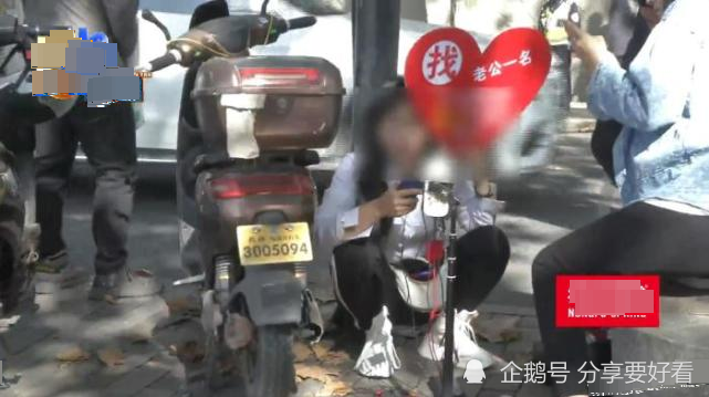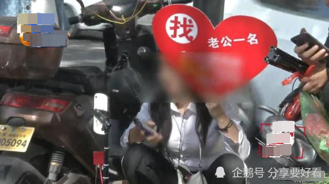 在女子的手上还有一个心形的广告出于,上面写着征婚!