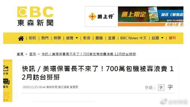 原标题:快讯!台媒:美国环保署长因浪费公款取消访台