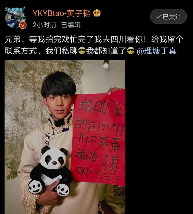黄子韬的上网速度真快,不愧是8g冲浪。这几天丁真特别火,大家都希望丁真可以去自己的家乡做客。黄子韬听说丁真和自己长得像,所以他发文称“兄弟,等我拍完戏忙完了我去四川看你!给我留个联系方式,我们私聊。”估计丁真所在的村子会特别喜欢黄子韬,因为有网友称丁真所在的村落碰见长得帅的人都会夸“你长得真像个黄子韬”。这下去相当于全村偶像去看丁真了,想必丁真也会特别开心。