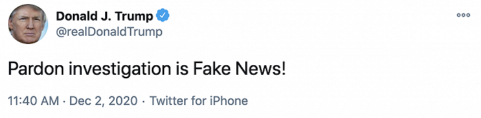 当地时间1日晚,现任美国总统、共和党总统候选人特朗普在推特上发文称,“赦免调查是假新闻!”