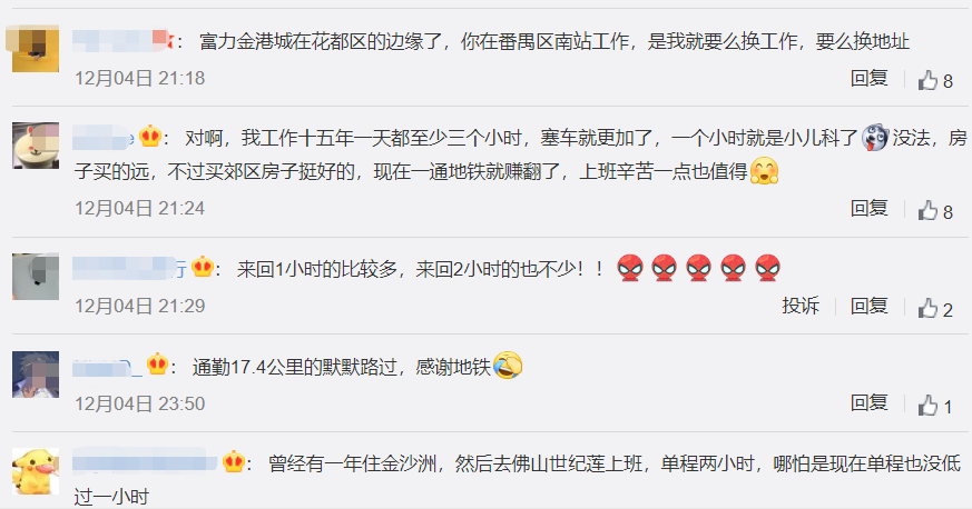 网友表示:这个算啥,住广州富力金港城的要去广州南站工作,往返一次4-5小时,即使是在广州市区,坐公共交通工具出行的通勤超过60分钟的比比皆是,只能说说出这个调查是未深入了解普通百姓工作和生活,因此对于通勤40分钟就大惊小怪,与何不食肉糜是同样的道理。