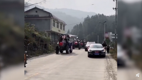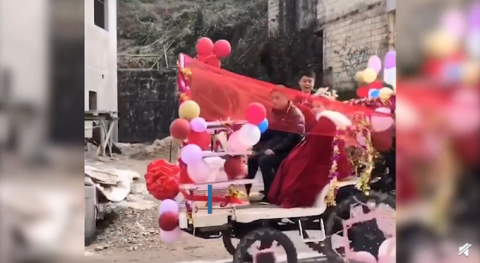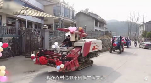 最强农机迎亲车队!返乡大学生新娘用插秧机当婚车,网友:真霸气