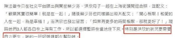 看到这一家人温馨的合照,这哪里像是离婚的呢?摆明是感情非常要好,并且家庭非常幸福嘛!而再看看配文方面,更是让人羡慕!洪欣说道:“享天伦之乐”,随后还配上了几个调皮的表情。能够用这4个来形容自己的家庭,足以见得一家人的幸福呀!