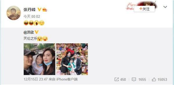 洪欣否认与张丹峰离婚!晒一家三口温馨合照,配文“享天伦之乐”