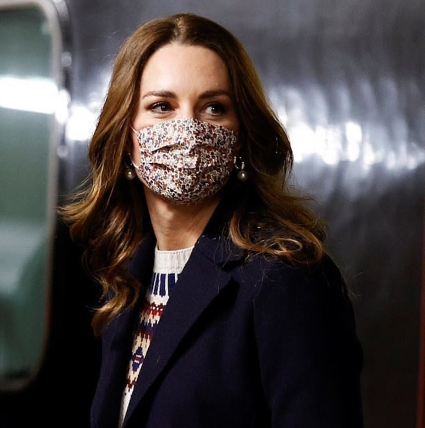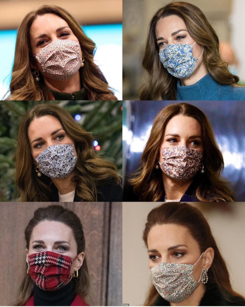 凯特王妃在这次全国旅行中,六次驾驭旧衣服,既展示出了时尚感,也诠释了未来王后节俭的魅力,与此同时,她也佩戴着六个不同颜色的口罩,每一种颜色和图案的选择都根据衣服来搭配。比如蓝色的凯瑟琳·沃克外套搭配着蓝色的碎花图案口罩。红色,白色与黑色相间的格子口罩搭配着红色外套。