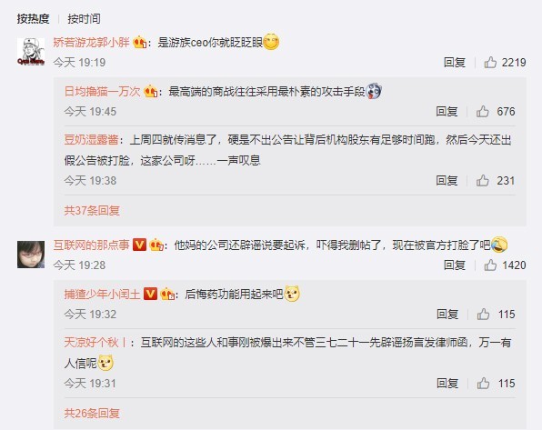甚至还包括@互联网的那点事等一些微博上的大V也对警方通报游族CEO疑似中毒事件进行了关注,并表示游族网络公司的律师函警告吓得删了贴。虽然警方通报游族CEO疑似中毒并未直接点明是哪家企业,但是无论是“事故”的梗概还是主人公的姓氏基本都对得上。