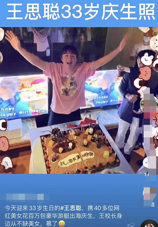 王思聪33岁生日宴太豪,花百万包豪华游艇,携40多位网红庆生