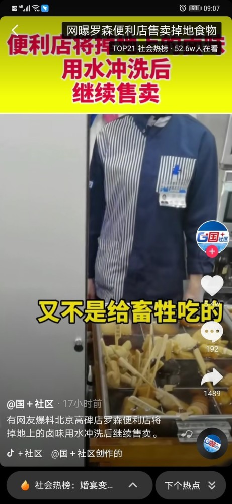 针对罗森回应关东煮掉地上冲水接着卖的生命,有网友表示:就这?临时工背锅不处理吗,出错都是临时工,那个店长无中生桌. 把我们当傻子了?还有网友表示:这得亏是被看见了,看不见的谁知道还有多少,这便利店的饭呀饭团这些,过期了都舍得扔,一个关东煮还不舍得扔吗?