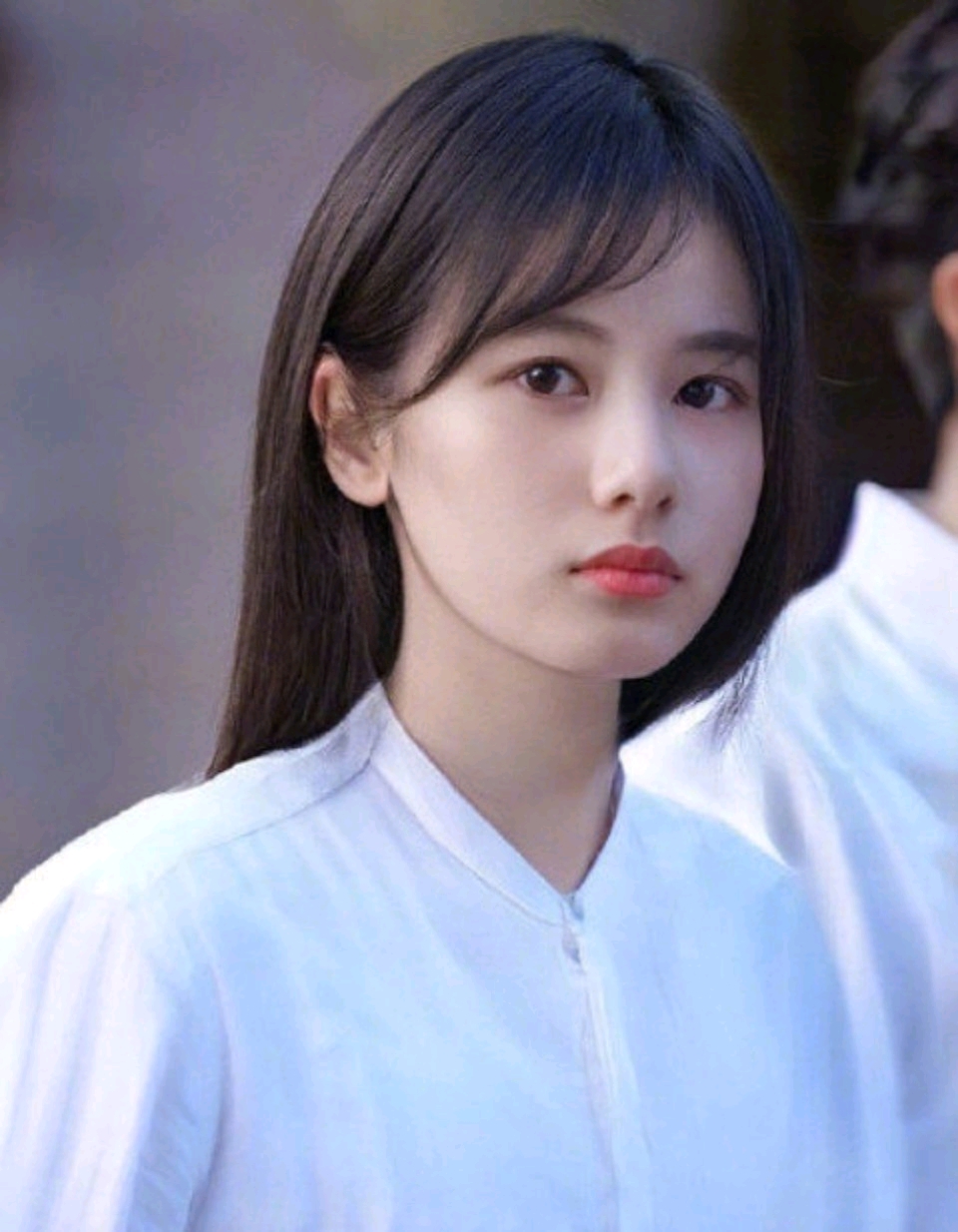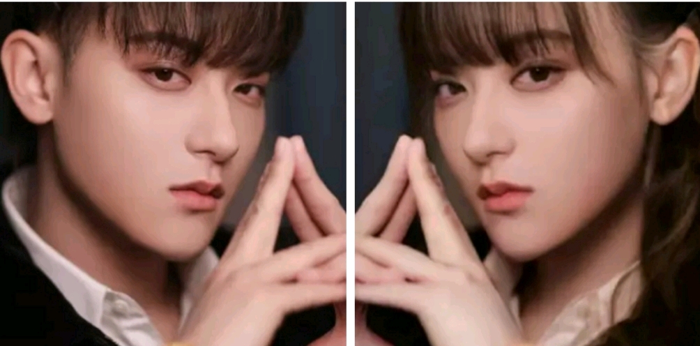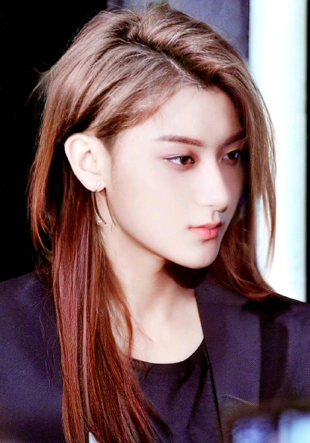 照片中他被p上空气刘海和长发,穿着白衬衫,五官精致,嘴巴微撅,娇俏可人。