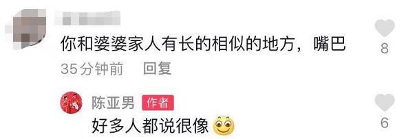 有网友直言她与大衣嫂越长越相像,尤其是嘴巴,陈亚男也大方回应称很多人都这么说,看样子她与婆婆的相处还是十分融洽的。