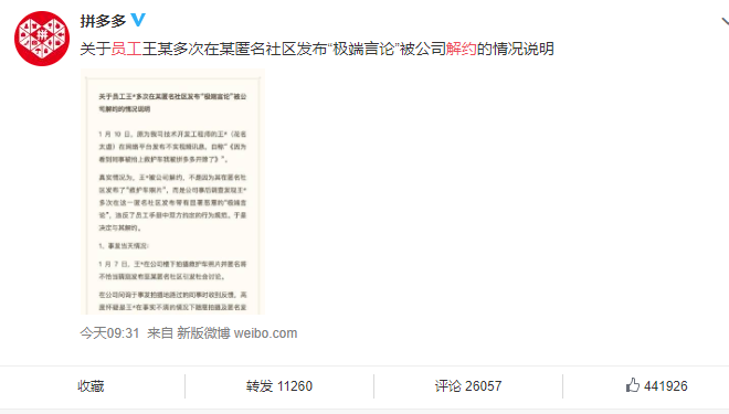 拼多多回应员工匿名发帖被辞退:多次发布“极端言论”!发生什么事?