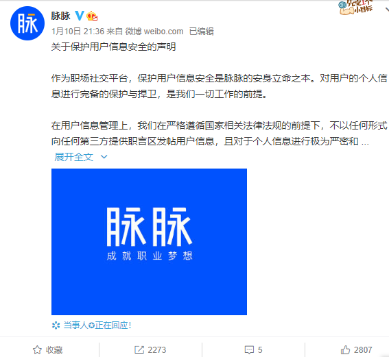 对此,拼多多公司人力资源部表示,王某上述指控均为不实讯息,且之前已在相关渠道予以澄清。昨晚,脉脉公司发布声明称,在用户信息管理上,严格遵循国家相关法律法规的前提下,不以任何形式向任何第三方提供职言区发帖用户信息,且对于个人信息进行极为严密和完备的安全保障。为了保障发帖安全,职言通过非对称加密技术对用户的发布身份进行了严格的加密处理,即使是脉脉内部工作人员,也无法获取任何个人相关信息。