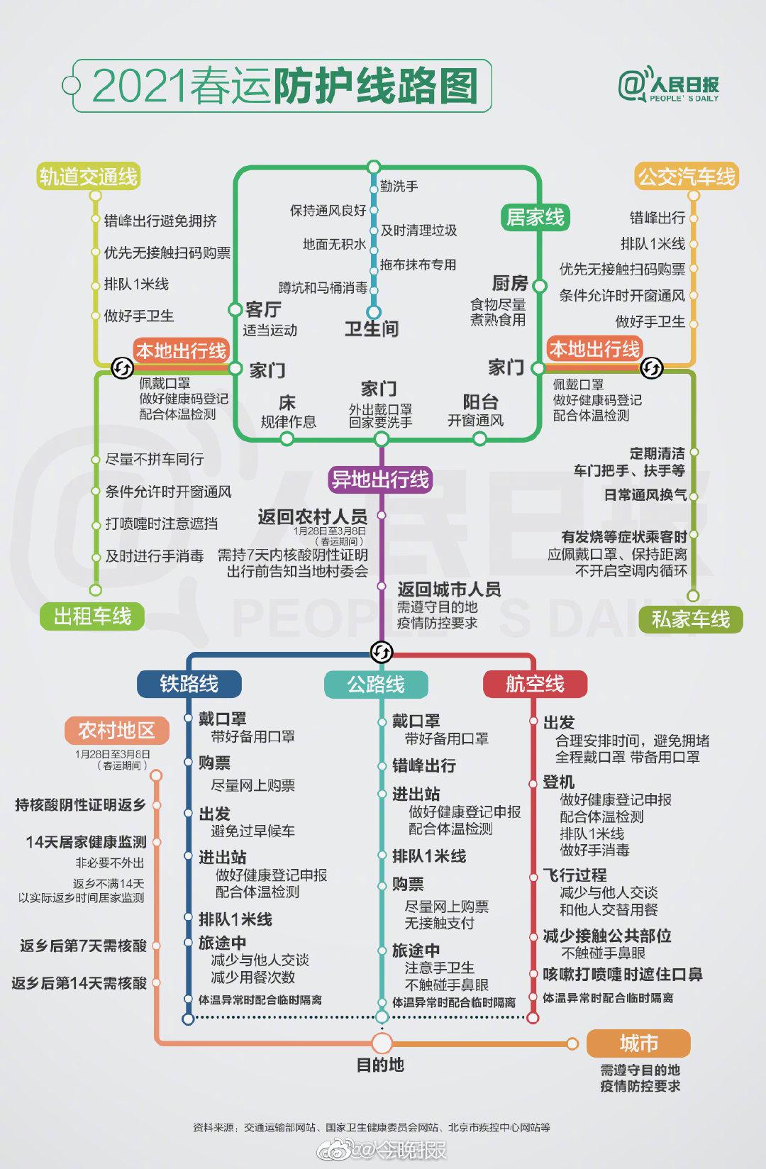 【#2021春运防护线路图#来了!】2021春运即将来临,疫情防控一步也不能松懈。 #一图看懂春运防护要点#↓↓↓每个人都做好防护,不给病毒可乘之机。@人民日报