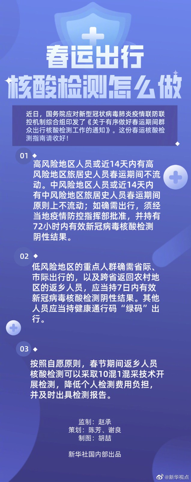 近日,国务院应对新型冠状病毒肺炎疫情联防联控机制综合组印发了《关于有序做好春运期间群众出行核酸检测工作的通知》。春运开启,这份核酸检测指南,请收好!