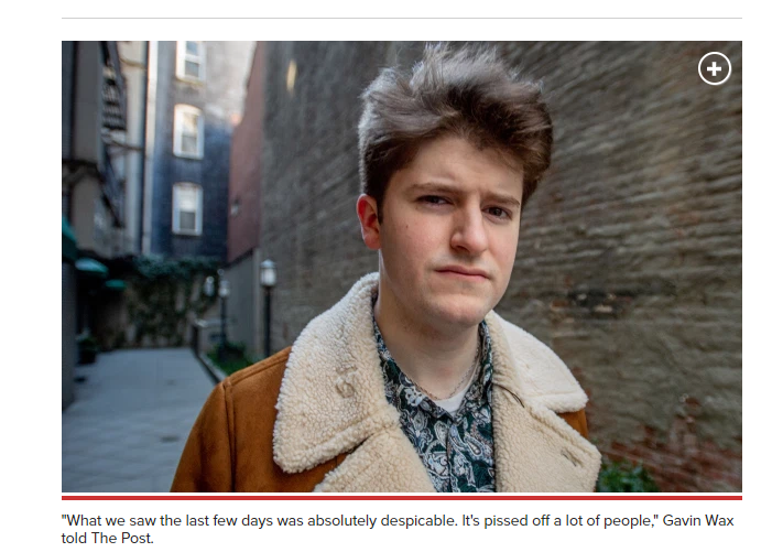 负责人瓦克斯(Gavin Wax)在接受《纽约邮报》的采访中说,过去几天的事件“真够卑鄙的”,显然是指投资应用程序Robinhood阻止其用户购买特定公司的股票。瓦克斯说:“其他阶层已无法与金融巨头们一同赚钱获益。”瓦克斯表示:“我确实认为他们需要受到起诉。其中许多人需要入狱。短信和电子邮件必须被查抄。我们需要一致的行动以引起反响。”