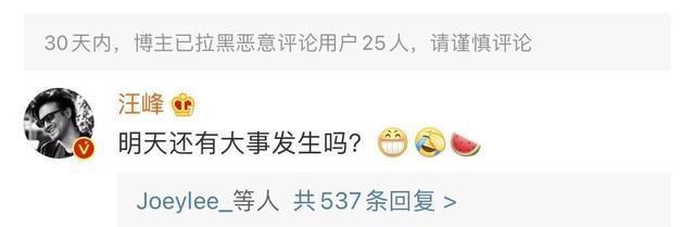 汪峰老师果然娱乐圈玄学,所以明天还有瓜吗?让我们来期待一下明天有什么大事发生,搬好小板凳 。