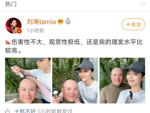 刘涛晒给老公王珂剃头照辟谣,她表示:瓜伤害性不大,观赏性极低