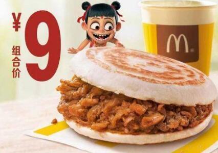 麦当劳的肉夹馍组合售价9元,宣传图上馍里满满的肉和一杯热饮,看起来很是有食欲。