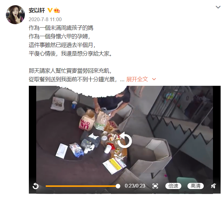 演员安以轩此前曾通过其微博发长文,吐槽了自己点麦当劳外卖却被烫伤的经历。