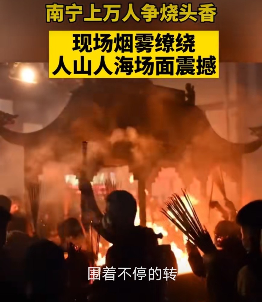 广西南宁青秀山上,上万市民齐聚一起,只是为了争头香,现场可谓是人山人海,场面十分震撼!
