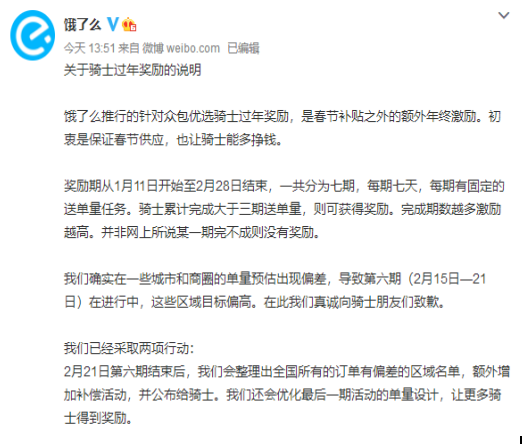 如何看待饿了么变相降低骑手过年奖励?
